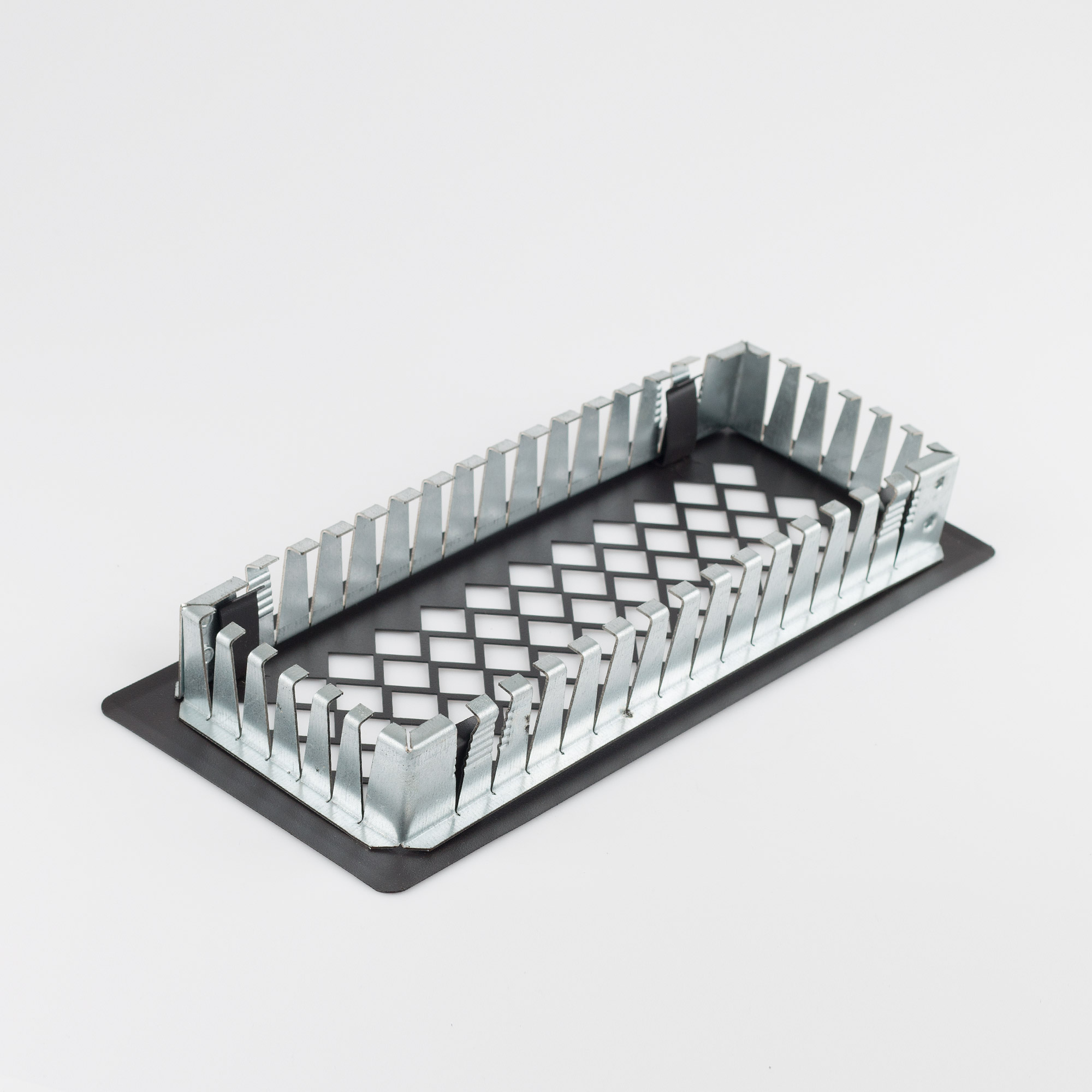 Galler med inmurningsram. Flexibelt svartlackerat metallgaller för spiskåpor, murverk etc. Gallret är böjbart och passar också välvda spiskåpor. Komplett med inmurningsram.