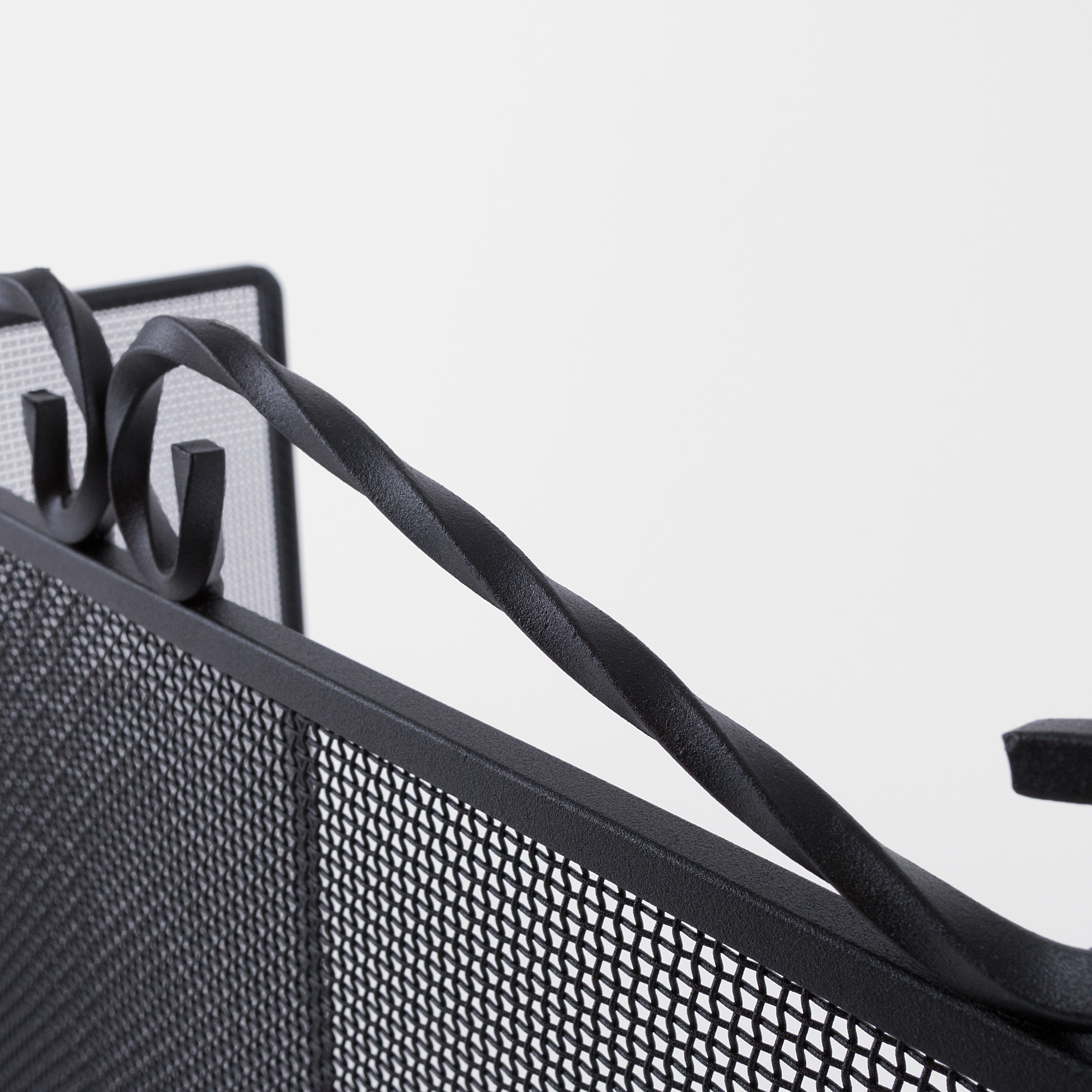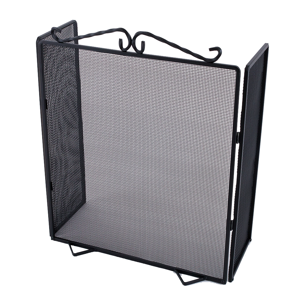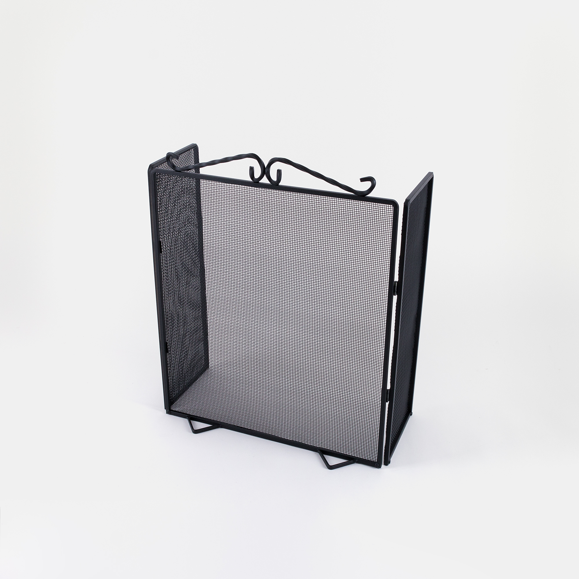 Ett traditionellt och funktionellt smidesgnistgaller i tre sektioner att ställa framför eldhärden.