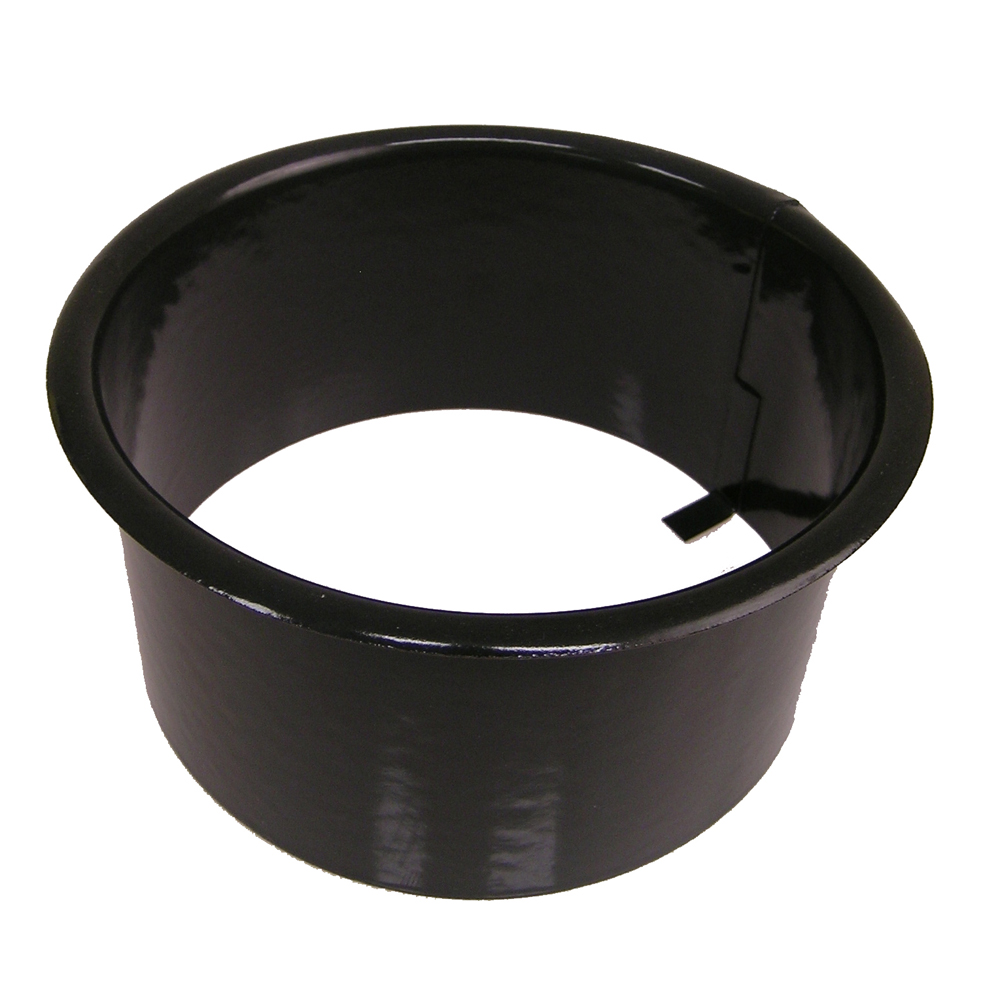 Emaljerad inmurningsstos för anslutning av emaljerat rökrör. Muras fast i murstocken. Tätning skall ske med tätningsgarn mellan stosens insida och utvändigt rör.