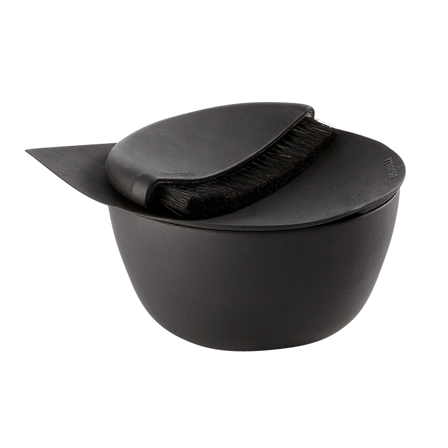 Sopskyffeln håller ordning på borsten och fungerar samtidigt som lock till förvaringsskålen.